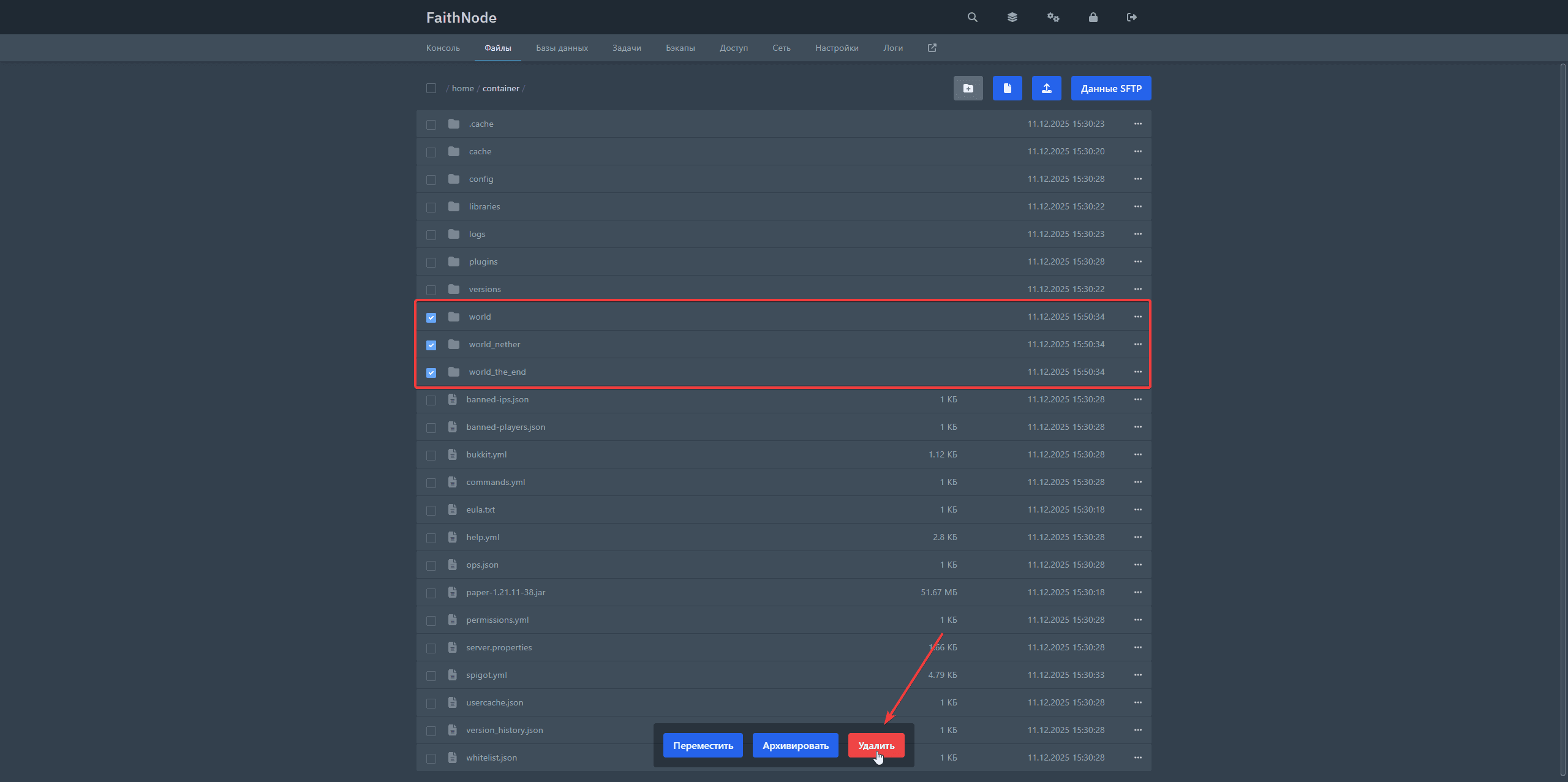 1. Выключите сервер и удалите папку world | world_nether | world_the_end